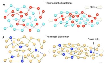 Common examples of thermoset plastics and polymers include epoxy, silicone, polyurethane and phenolic. In addition, some materials such as polyester can occur in both thermoplastic and thermoset versions. Unlike thermoplastic pellets, the components of thermoset polymers are stored in liquid form, usually in large tanks or containers.